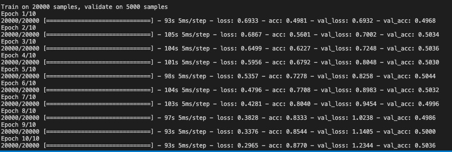 history = model.fit(input_train, y_train, epochs=10, batch_size=128,